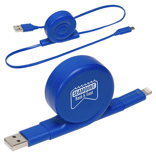The All-In-One Retractable Charging Cable is a great tech audience, or really any audience, promotional gift, because it works with both of the most popular phone designs. You do not need to know if your client is Apple or Android, the cord is going to work either way.